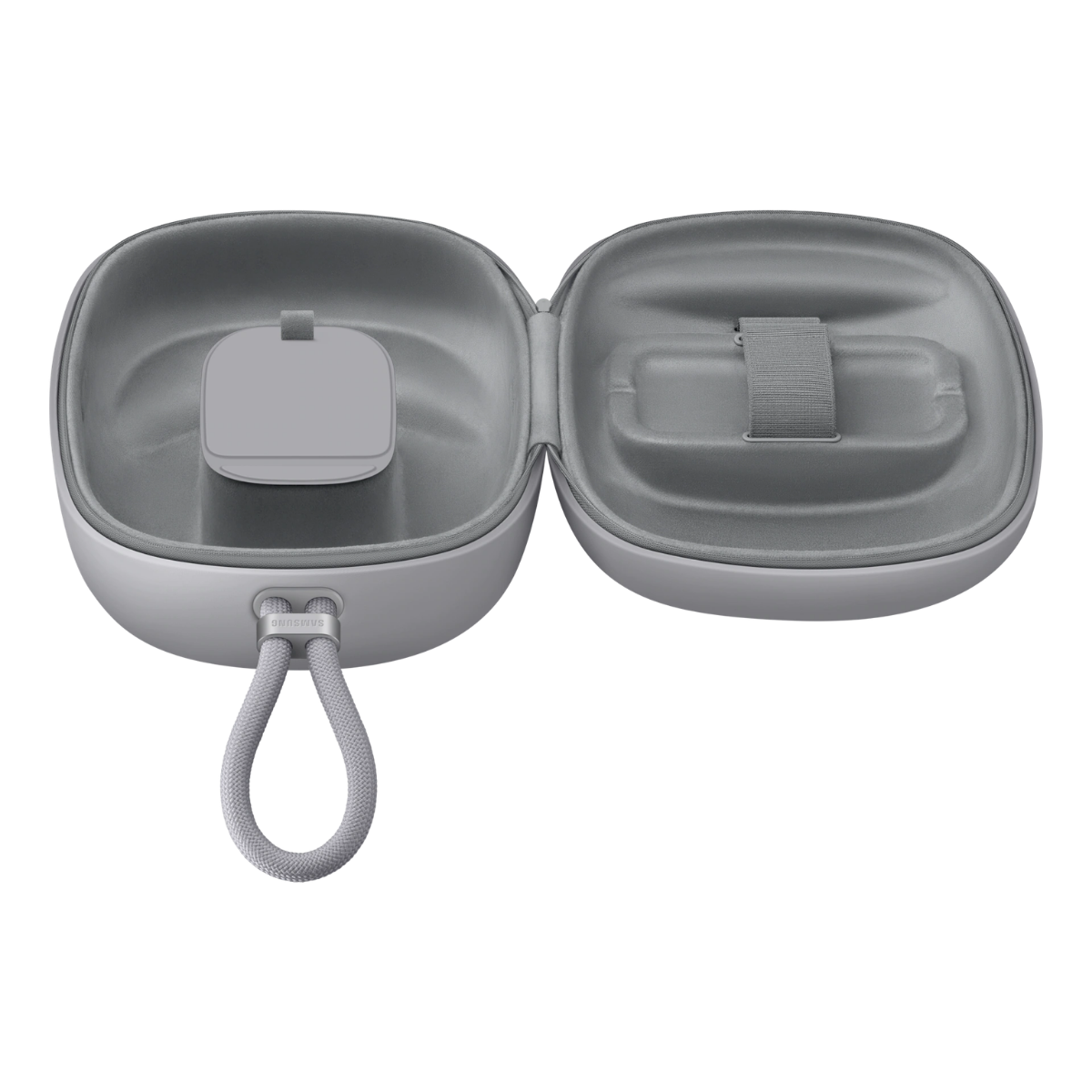 Samsung Galaxy XR Travel Case to funkcjonalne etui stworzone z myślą o wygodnej organizacji i łatwym dostępie do sprzętu VR oraz jego akcesoriów. Wnętrze zostało zaprojektowane tak, aby każdy element miał swoje miejsce, co ułatwia szybkie pakowanie i rozpakowywanie zestawu. Praktyczna konstrukcja oraz lekka forma sprawiają, że etui doskonale sprawdza się zarówno w codziennym użytkowaniu, jak i podczas wyjazdów, zapewniając komfort i porządek w każdej sytuacji.